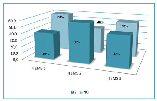 Por otra parte, se tiene el análisis realizado a la dimensión expresión plástica, existe un contraste en el resultado obtenido y lo que reflejan los autores, según el Gráfico 3, indica 53 por ciento respondió de forma negativa, es decir que los estudiantes no utilizan las técnicas de expresión para favorecer el desarrollo del reciclaje en el plantel, de acuerdo con los criterios, se llama técnicas de expresión al trazado, dibujo, pintura. La discusión se encuentra en que el docente al momento de planificar debe indicar que recursos va a utilizar para que el contenido dado sea alcanzado, esto quiere decir que los docentes no enseñan al estudiante, desde el inicio, a expresarse y que su expresión artística plástica se basa en las técnicas utilizadas a diario y las mismas le sirven para comunicarse.