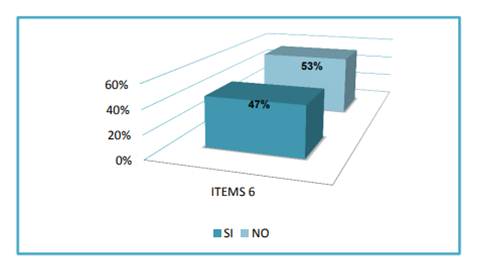 Finalmente, en último ítem los estudiantes afirmaron con un 73 por ciento la reutilización de botellas de agua logrando un beneficio económico dentro de la institución, obteniendo como resultado un gran aporte para la comunidad; pero por el contrario el 27 por ciento indicó no creer que reutilizando las botellas de agua se logra un beneficio económico dentro de la institución. Pues se observa la conciencia de reutilizar, la cual tiene por finalidad el rehusar o "volver a usar" algunas cosas que se considera inservibles; es decir, evocando lo mencionado en Ecoalbor (2009, citado por Arellano, 2012)
